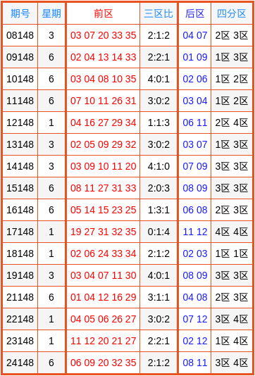 三区号码【25-35】:在历年大乐透第148期同期奖号中,该区开出率为35.00%,表现一般,与理论概率相近。本期预计该区出号1枚,推荐出号关注:35。