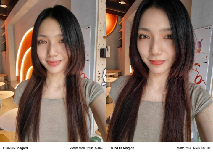 相比之下,荣耀 Magic 8 自拍则无功无过,自然模式较好地平衡了皮肤纹理和磨皮效果,总体颜色比较透亮。
