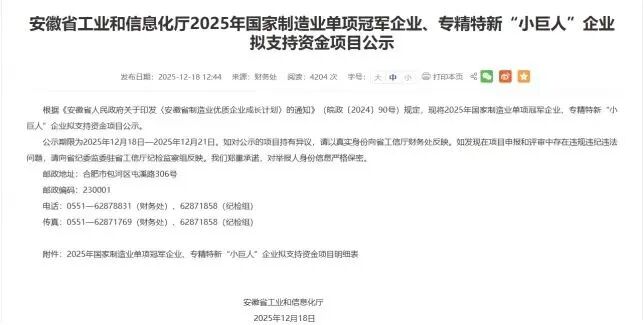 近日,安徽省工业和信息化厅对2025年国家制造业单项冠军企业拟支持资金项目进行公示,瑞泰科技(002066)成员企业瑞泰马钢新材料科技有限公司凭借在节能环保耐火材料细分领域的深厚积累与领先优势,成功入选。